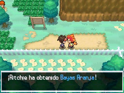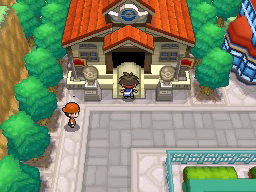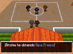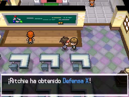 Para volver a Ciudad Engobe hay que pasar primero por la Ruta 19. Al entrar en ella, aparecerá una vez más Mirto y te dará una Baya Aranja. Continúa ahora hasta la ciudad y ve al Gimnasio Pokémon de la ciudad, donde el chico de la tercera imagen te dará un Defensa X. Ve por la puerta que hay arriba y recibirás un Agua Fresca a la vez que podrás ver a Cheren, Líder del gimnasio.