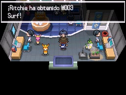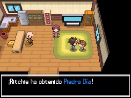 Si sigues un poco más y vas a la derecha llegarás a una casa en la que la mujer de la primera imagen curará a tus Pokémon, mientras que la niña te dará una Piedra Día. Continúa ahora hacia la derecha y usa Surf para atravesar el agua y conseguir la MT56 Lanzamiento, situada detrás del centro de estudios, y pasar, si quieres, por la Cueva Loza, a la cual llegarás atravesando el río. Si no te apetece ir a la Cueva Loza, ve a la izquierda y continúa hacia arriba para llegar a la Cueva Electrorroca.