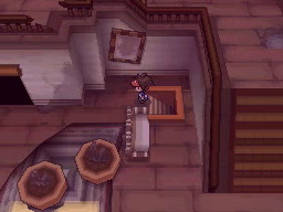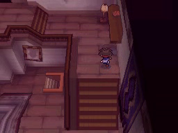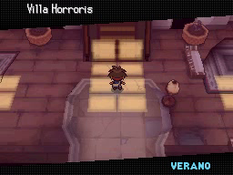 Sal de la habitación central, baja las escaleras principales y sube por las de la izquierda para llegar a la habitación de la primera imagen, en la cual podrás combatir contra un entrenador más. Ahora no queda más por hacer en Villa Horroris, así que regresa a la parte exterior de la Zona Reversia y baja las escaleras de la segunda imagen para entrar en la zona interior.
