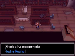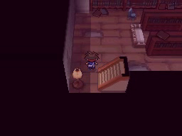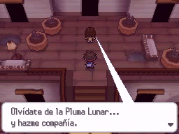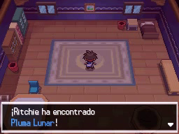Una vez hayas subido las escaleras de la derecha podrás entrar en la habitación de la segunda imagen, en la cual encontrarás un Carameloraro. Tras eso, baja las escaleras de la derecha y sube por las escaleras principales, tras las cuales volverás a ver a la chica fantasma, tras la cual encontrarás la Pluma Lunar. Cuando recojas este objeto, la chica aparecerá una última vez y te dirá que se lo entregues a un Pokémon en un puente de la región, aunque por ahora no hace falta darle importancia.