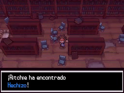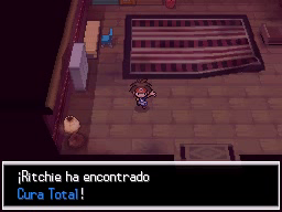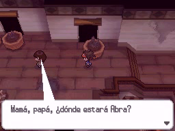 Ahora tendrás que pasar por numerosas sillas para llegar hasta el otro lado del piso, encontrándote un Hechizo por el camino. Cuando llegues a la derecha, sube las escaleras y ve a la habitación que habrá delante de ti, en la cual encontrarás a un Mochilero dispuesto a combatir. Regresa ahora a la zona principal y ve por las escaleras de la derecha hasta la parte superior, donde aparecerá una chica fantasma hablando de un Abra.