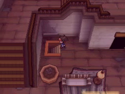 Baja ahora por la izquierda y ve a la habitación de la izquierda para encontrar un Cura Total. Baja ahora por las escaleras de la izquierda hasta el piso inferior y podrás ahora conseguir una Piedra Noche, ya que los muebles habrán despejado el camino hasta el objeto. Vuelve a subir ahora por la derecha y ve por las escaleras de la derecha.