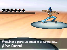 El Líder Ciprián se encontrará en la parte superior del gimnasio, y usará un equipo formado por 3 Pokémon (4 Pokémon en el Modo Reto) cuyos niveles estarán entre el 49 y el 51. Una vez lo derrotes, te entregará la Medalla Marea, consiguiendo así tu octava y última medalla de gimnasio.