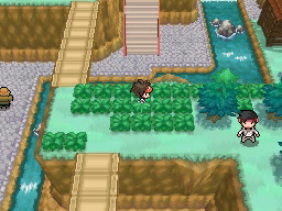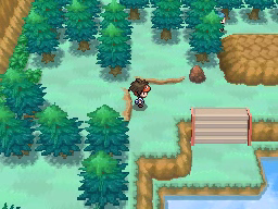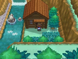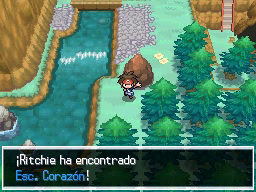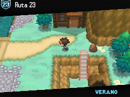 Justo al llegar a la Ruta 23 verás una casa delante tuya. En ella podrás curar a tus Pokémon hablando con la chica de la imagen. Antes de atravesar el río, ve hacia abajo para conseguir una Esc. Corazón. Tras eso, continúa por la parte izquierda, donde encontrarás unos pocos entrenadores.