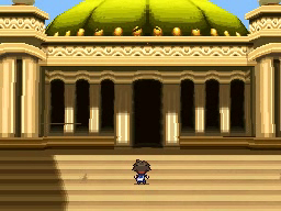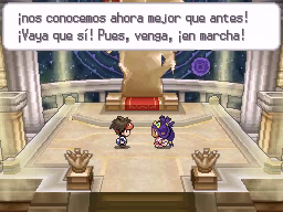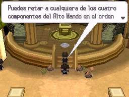 En la Liga Pokémon verás el Centro Pokémon, a la izquierda, y la entrada al Alto Mando, a la derecha. Cuando estés listo, habla con el chico de la primera imagen y te dejará entrar, tras lo cual se bloqueará el camino para que no puedas salir. Primero tendrás que enfrentarte a los cuatro miembros del Alto Mando en el orden que elijas, cada uno en una sala diferente.