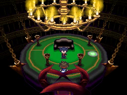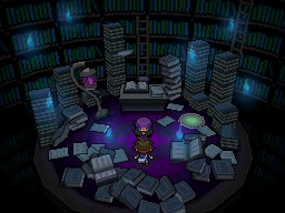 En la sala de la izquierda te enfrentarás contra Anís, quien usará 4 Pokémon del tipo Fantasma, débiles contra los tipos Fantasma y Siniestro, entre los niveles. Al entrar en la sala, unas llamas azules iluminarán tu camino hasta la zona de libros en la que se encuentra Anís.