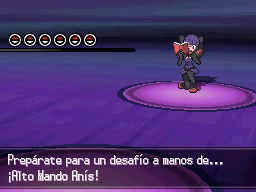 Al igual que la anterior vez, podras luchar en cualquier orden contra los miembros del Alto Mando, pero aquí te los mostramos de izquierda a derecha. El primero de ellos es Anís, con Pokémon del tipo Fantasma, débiles contra los tipos Siniestro y Fantasma. El segundo miembro del Alto Mando es Aza y usa Pokémon del tipo Siniestro, débiles casi todos contra el tipo Lucha.