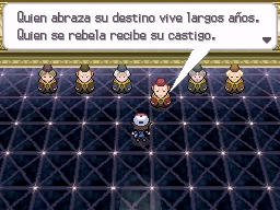 Tras las escaleras que salen de la Liga Pokémon llegarás al Palacio de N, donde verás a seis de los siete sabios, pues Ghechis no estará. Cada uno de ellos te dirá una frase y luego querrán combatir contigo. Sin embargo, vendrán los Líderes de gimnasio y se encargarán de ellos. Mientras tanto, ve hacia arriba y luego hacia la derecha, hacia las escaleras.