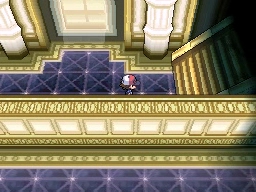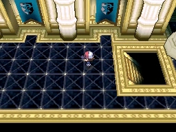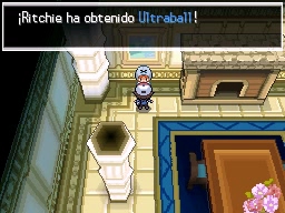 En este piso puedes encontrar un Máx. Revivir en el suelo de una habitación, u obtener una Ultraball siempre que la necesites, hablando con el recluta de la segunda imagen. Además, el recluta que hay al lado te podrá llevar a la Liga Pokémon y de vuelta al palacio. Cuando llegues al final del piso, verás a otro miembro del Trío Sombrío al lado de las escaleras.