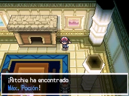 Tras subir de piso verás a uno de los miembros del Trío Sombrío, quien te dirá que puedes curar a tus Pokémon en la habitación que tienes delante. Entra en ella y habla con la chica de rosa para que se recuperen. En otra habitación del piso podrás encontrar una Máx. Poción en el suelo. Tras eso, ve al siguiente piso.