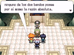 Mirto le explicará a N que ningún bando tiene la razón total y, junto a Cheren, se llevará a Ghechis de la sala. Tras eso, N querrá contarte por qué quiso enfrentarse a tí y, tras eso, se despedirá y se marchará con su Pokémon legendario.