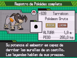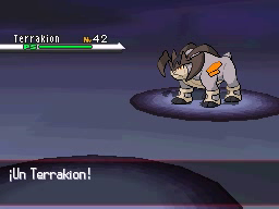 Terrakion estará en el Nivel 42 y conocerá los movimientos Espadasanta, Avalancha, Represalia y Refuerzo. Su nivel no es muy alto para un Pokémon legendario, pero su bajo ratio de captura hará que necesites algunas Ultraball para capturarlo.