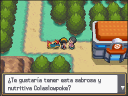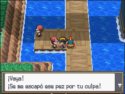 Si vuelves por la derecha, verás que también hay unos entrenadores sobre el agua. Estos son pescadores, aunque uno de ellos tendrá solo Magikarp, por lo que no te podrá hacer daño. Cuando los derrotes, sigue hacia abajo y verás a un hombre tratando de venderte una Colaslowpoke sin éxito.
