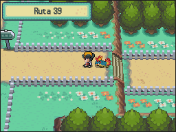 Al llegar a la Ruta 39, verás una granja a tu izquierda, conocida como la Granja Moo Moo. No es necesario pasar por ella, así que sigue hacia el sur, para enfrentarte a los últimos entrenadores. Tras derrotarlos, llegarás directamente a Ciudad Olivo.