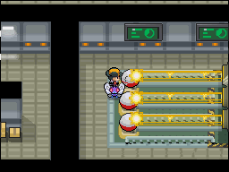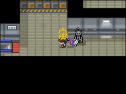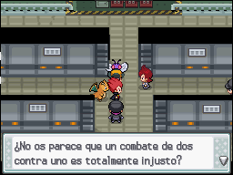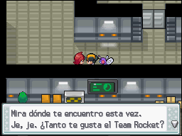 Entra en la sala de las máquinas, pero enseguida vendrán los Ejecutivos del Team Rocket para evitar que los derrotes. Por suerte, también vendrá Lance para combatir, y os enfrentaréis en un combate doble. Cuando los hayas vencido, el Team Rocket se marchará de la guarida, pero la máquina aun seguirá funcionando. Lance te dirá que la única forma de pararlos es derrotándolos, así que tendrás que combatir contra los tres Electrode que ves en la imagen.