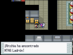 Ahora toca dirigirnos a la oficina del Jefe. Antes de eso, puedes conseguir la MT49 Robo al lado de unas cajas. Ahora, sigue las escaleras que hay arriba a la derecha y luego dirígete de nuevo a la izquierda. Allí encontrarás dos escaleras, una de ellas te llevará a la oficina del Jefe y la otra hasta la MT46 Ladrón. Cuando estés delante de la oficina del Jefe, aparecerá tu rival, pero tras hablarte un poco se marchará.