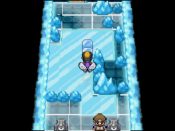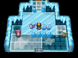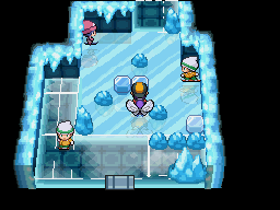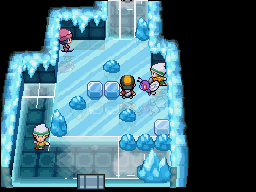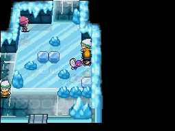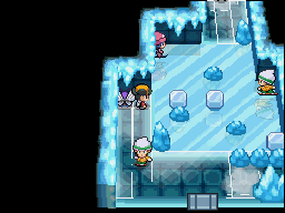 Tras derrotar a la Guarida Rocket, el Gimnasio Caoba estará de nuevo accesible. Ahora, dirígete a él para obtener tu 7a medalla. Los Pokémon de este Gimnasio serán de tipo Hielo, a los que puedes ganar con los tipos Fuego, Lucha, Acero y Roca. Para avanzar por el gimnasio, tendrás que deslizarte por el hielo y unir los bloques de hielo, como mostramos en las imágenes: