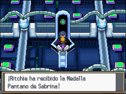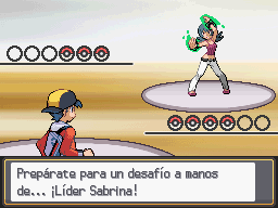 El Gimnasio Azafrán usará Pokémon del tipo Psíquico, a los que vences fácilmente con los tipos Bicho, Fantasma y Siniestro. Este gimnasio tendrá baldosas teletransportadoras, así que podrás perderte de vez en cuando por el gimnasio, pero si sigues recto, llegarás hasta la Líder Sabrina. Sabrina tiene sus Pokémon entre los niveles 53 y 55, en el cual tiene a su Alakazam. Cuando la hayas vencido, te entregará la Medalla Pantano, además de la MT48 Intercambio. Ahora, sigue hasta tu siguiente objetivo, ¡Ciudad Azulona!