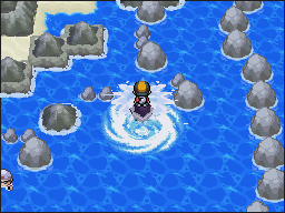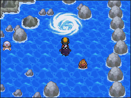 Para llegar hasta Lugia en las Islas Remolino, debes haber entrado en la isla que acabamos de mostrar, pues sólo esta nos vale para llegar a Lugia. Cuando entres, sigue detenidamente los pasos de las imágenes que te mostramos a continuación, y llegarás fácilmente. Es recomendable usar Destello.