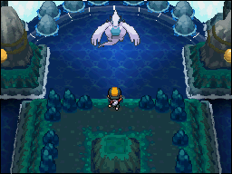 Lugia se encuentra bajando el Piso -2 de las Islas Remolino. Tras mostrar el Ala Arcoiris, baja abajo del todo y entra en la cueva que verás. Tras ella, se oculta Lugia, el legendario Pokémon rey de los mares. Usa Surf y ve hacia Lugia para iniciar el combate. Lugia estará en el Nivel 45 en Pokémon Soul Silver / Alma Plata y en el Nivel 70 en Pokémon Heart Gold / Corazón Oro. En la edición Soul Silver podrás antes observar a las Chicas Kimono, haciendo su danza y luego a Lugia salir de entre las cascadas.