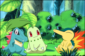 a su primer Pokémon entre tres a elegir: Chikorita, Cyndaquil y Totodile.