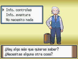 Ahora nos encontraremos con el Profesor Serbal, que nos explicará información básica del juego, como los controles. Tras eso, nos mostrará una imagen de una PokéBall y el profesor explicará su funcionamiento. Tan solo será necesario que toquemos el centro de esta con el lápiz táctil, entonces pasaremos al siguiente paso.