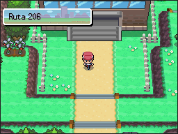 Al terminar el camino una Chica te entregará una Bandera. Ahora, vuelve a la Ruta 206, esta vez por debajo de la Ruta Ciclista, cogiendo el camino que hay justo a la derecha de la salida.