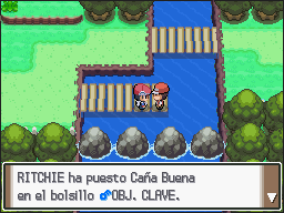 Coge el camino hacia la Ruta 209 por el sureste de la ciudad. Justo en el paso, te encontrarás con tu Rival, que te retará a un combate. Tras haberle vencido, dirígete todo recto por la Ruta 209, donde te encontrarás con una serie de entrenadores. También verás a un pescador en el agua, habla con él y te dará una Caña Buena.