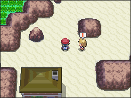 Cuando ya estés en la Ruta 213 tendrás que pasar por el edificio que tienes en frente de tí para poder pasar a la otra parte de la ruta. Tras eso, te encontrarás con los primeros entrenadores de esta parte de la Guía. Luego, dirígete a la izquierda y podrás encontrar a más entrenadores.