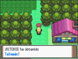 Cuando vuelvas a la Ruta 210, te encontrarás de nuevo a los Psyduck bloqueando el camino. Usa esta vez la Poción Secreta de Cynthia y se apartarán el camino. Entonces, vendrá Cynthia y te entregará un Talismán. Ahora, sigue tu marcha hacia Pueblo Caelesis, enfrentándote a los entrenadores a tu paso: