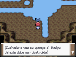 Al llegar a la Orilla Valor observarás que ésta vez no hay nadie bloqueando el paso, así que entra. Tras eso, observarás a muchos Magikarp y reclutas del Equipo Galaxia por donde estaba el lago. Observarás una especie de cueva en medio, entra en ella y te encontrarás con Saturno, uno de los comandantes del Equipo Galaxia.