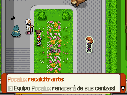 Al terminar la captura Shaymin se marcha y por lo tanto el miembro de Equipo Pocalux también. Debes continuar por el camino de la derecha hasta llegar a una especie de pasarela que debes cruzar para llegar a la zona siguiente. En esta zona continúa el camino por la derecha, y cuando veas una salida hacia arriba no la tomes, debes tomar la siguiente que está hacia el fondo del camino, y al subir hacia arriba podrás ver nuevamente a Shaymin en medio del jardín. Nuevamente un integrante del Equipo Pocalux vendrá y te atacará con dos Bellosom y un Roserade (debes atraparlos con el capturador).