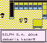 Ve al centro de la ciudad y dirígete al edificio de Silph S.A., el edificio grande de la imagen, que estará siendo vigilado por un Rocket. Entra en el edificio y sube al siguiente piso, ya que no hay nadie en la Planta Baja.