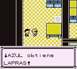 Ahora llegarás a una habitación donde te encontrarás de nuevo con tu Rival, esta vez con un equipo formado por 5 Pokémon. Asegúrate tú también de tener 5 o menos Pokémon, ya que el señor de la imagen te entregará un Lapras. Vuelve atrás para curar a tus Pokémon y regresa luego para continuar el camino.