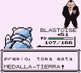 Usa la baldosa que hay en el borde del gimnasio y luego camina hacia la izquierda hasta llegar al Líder, quien resulta ser Giovanni, el jefe del Team Rocket. Giovanni será el más poderoso de los líderes, ya que su equipo de 5 Pokémon tendrá los niveles situados entre el 42 y el 50. Cuando lo derrotes, recibirás la Medalla Tierra y la MT27 Fisura.
