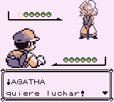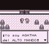 Agatha es el tercer miembro y el segundo más fuerte del Alto Mando, y usará 5 Pokémon, cuyos niveles oscilan entre el 55 y el 60, de tipos Fantasma y Veneno. Los mejores tipos para combatir contra ella son el tipo Psíquico y el Fantasma. Tras derrotarla, podrás pasar a la sala del último miembro del Alto Mando.