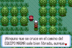 Tras entrar en el bosque, ve por la parte de la derecha y continúa luego hacia abajo para conseguir una Poké Ball. Tras ello, ve por la izquierda y encontrarás un Antiparaliz. En medio del bosque te encontrarás con un hombre haciéndose el despistado, pero un miembro del Equipo Magma (edición Rubí) o del Equipo Aqua (edición Zafiro) lo estará persiguiendo.