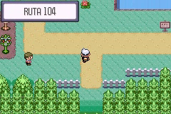Saliendo por la izquierda de Ciudad Petalia llegarás a la Ruta 104. Al comienzo de la ruta encontrarás un par de entrenadores, uno de ellos en la playa, y verás la casa del Sr. Arenque, quien sin embargo no estará en ella. Continúa por el camino y llegarás a la entrada al Bosque Petalia.