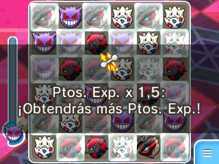 Pero desde la versión 1.2.0 de Pokémon Shuffle cada sábado aparece una fase especial de Victini que hace que sea realmente fácil subir a nuestros Pokémon. El problema de esta fase es que solamente se puede jugar una vez a la semana y luego desaparece, pero da 400 puntos de experiencia a tres de tus Pokémon y 800 al que gane la corona, una cantidad que aumentaría hasta 600 y 1200 respectivamente con el Ptos. Exp. x 1,5 que merece mucho la pena gastar en esta fase. Con esto un Pokémon de Fuerza 70 tardaría por tanto 12 partidas como mucho en llegar a Nivel Máx, el problema es que eso se traduciría en 12 semanas en este caso.