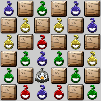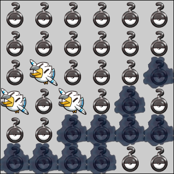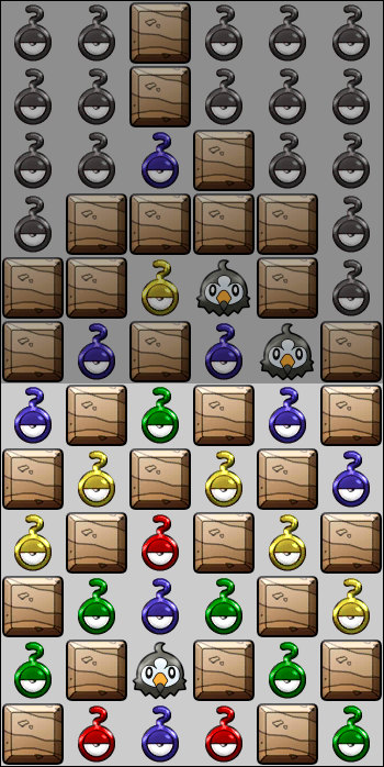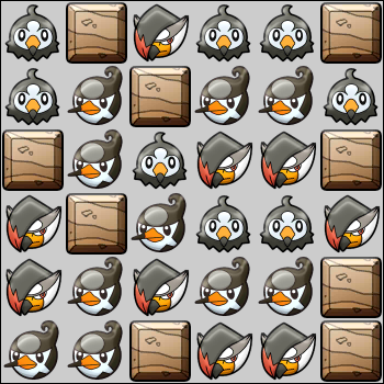 Interferencia 1 Tras realizar un movimiento, si no ha habido un combo de 2 o más líneas, elige una acción: -Rellena 3 casillas al azar con Wingull -Rellena 3 casillas al azar con Piedra Si PS <= 7000 (~51%), cambia de interferencia.