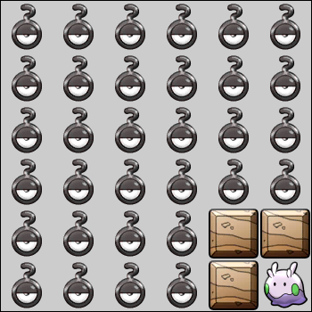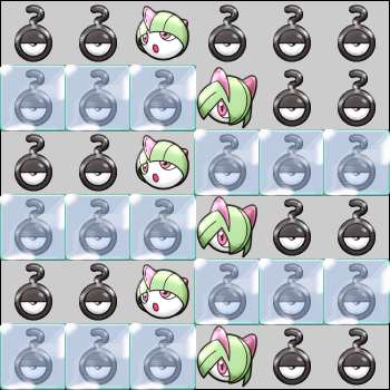 Interferencia 1 Tras 4 turnos, elige una accion: -Rellena las filas 1 y 2 con [Grimer,Grimer,nada,nada,Grimer,Grimer,Grimer,nada,nada,nada,nada,Grimer] Tras 1 vez, cambia de interferencia. Repite cada 4 turnos.