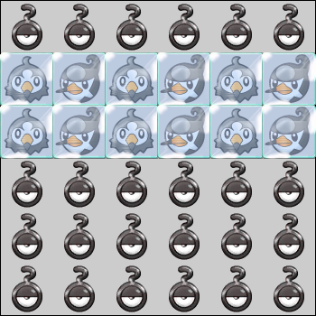 Interferencia 2 Tras realizar un movimiento, si no ha habido un combo de 3 o más líneas, elige una acción: -Rellena 3 casillas al azar con Wingull -Rellena 5 casillas al azar con Piedra