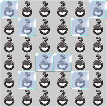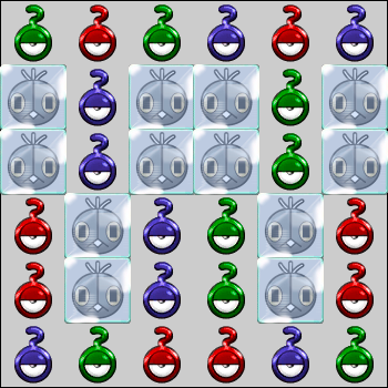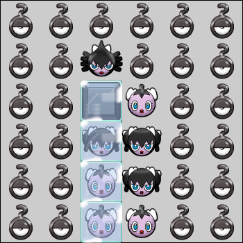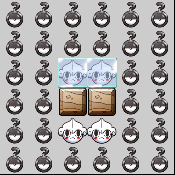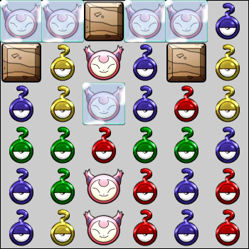 Interferencia 2 Tras realizar un movimiento, si no ha habido un combo de 5 o más líneas, elige una acción: -Rellena 2 casillas al azar con Hielo -Rellena 3 casillas al azar con Hielo -Rellena la fila 1 con [Mime Jr.,nada,nada,nada,nada,Mime Jr.] -Rellena la fila 1 con [nada,nada,Mime Jr.,Mime Jr.,nada,nada] -Rellena la fila 1 con [Mime Jr.,nada,nada,nada,nada,Mime Jr.] -Rellena 5 casillas al azar con Hielo