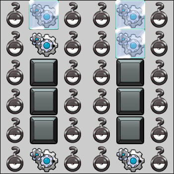 Interferencia 2 Tras 2 turnos, elige una accion: -Rellena las columnas 5 y 6 con [Sliggoo,Sliggoo,Piedra,Piedra,Sliggoo,Sliggoo,Piedra,Piedra,Sliggoo,Sliggoo,Piedra,Piedra] -Rellena las columnas 5 y 6 con [Piedra,Piedra,Sliggoo,Sliggoo,Piedra,Piedra,Sliggoo,Sliggoo,Piedra,Piedra,Sliggoo,Sliggoo] Tras 3 veces, cambia de interferencia. Repite cada 2 turnos.