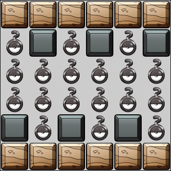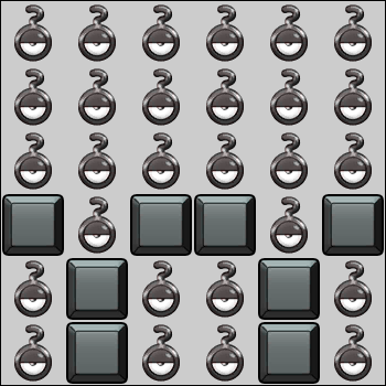 Interferencia 2 Tras 2 turnos, elige una accion: -Rellena las filas 1 y 2 con [Irrompible,nada,Irrompible,nada,Irrompible,nada,nada,Piedra,nada,Piedra,nada,Piedra] -Rellena las filas 1 y 2 con [nada,Irrompible,nada,Irrompible,nada,Irrompible,Piedra,nada,Piedra,nada,Piedra,nada] Repite cada 2 turnos.