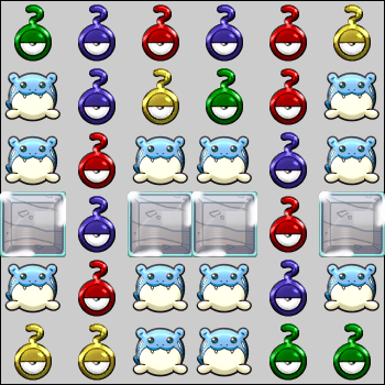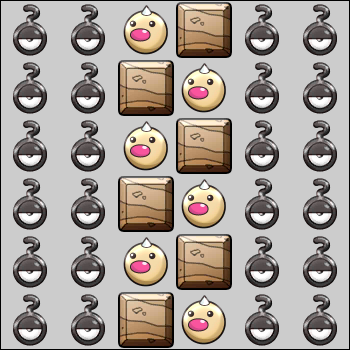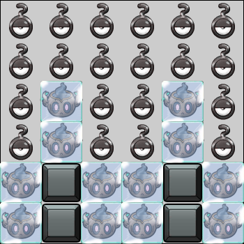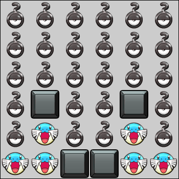 Interferencia 2 Tras 0 turnos, elige una accion: -Rellena las columnas 4 y 5 con [Piedra,Piedra,Smoochum,Smoochum,Piedra,Piedra,Smoochum,Smoochum,nada,nada,nada,nada] Tras 1 vez, cambia de interferencia. Repite cada 0 turnos.