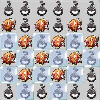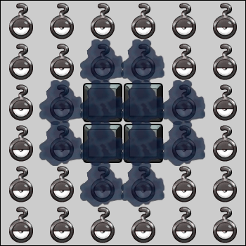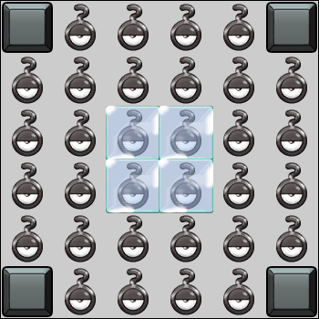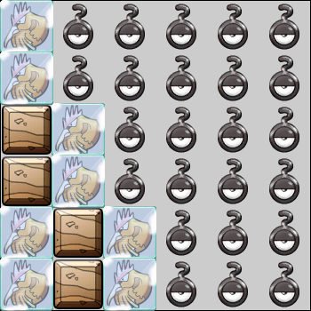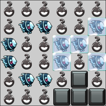 Interferencia 1 Tras 3 turnos, elige una accion: -Rellena el bloque 4x2 que comienza en 2:5 con [Phantump,nada,nada,Phantump,Phantump,nada,nada,Phantump] Tras 1 vez, cambia de interferencia. Repite cada 3 turnos.