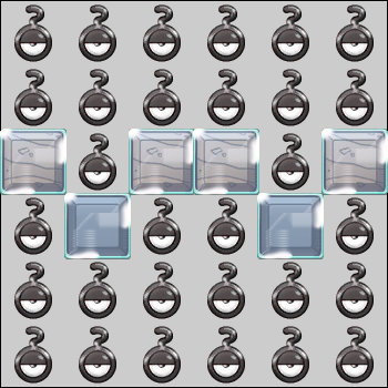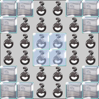 Interferencia 1 Tras 2 turnos, elige una accion: -Rellena las filas 1 y 2 con [Irrompible,nada,nada,nada,nada,Irrompible,nada,Piedra,nada,nada,Piedra,nada] -Rellena las filas 1 y 2 con [Hielo,nada,nada,nada,nada,Hielo,nada,Hielo,nada,nada,Hielo,nada] -Rellena el bloque 2x3 que comienza en 3:4 con [Irrompible,Irrompible,Piedra,Piedra,Piedra,Piedra] -Rellena el bloque 2x3 que comienza en 3:4 con Hielo Si PS <= 5000 (~40%), cambia de interferencia. Repite cada 2 turnos.