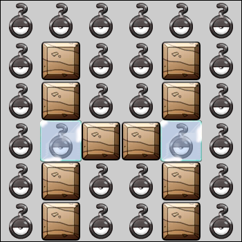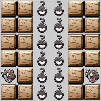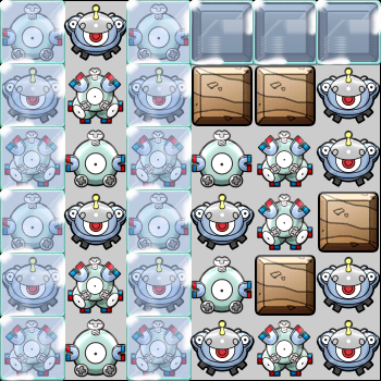 Interferencia 2 Tras 3 turnos, elige una accion: -Rellena las filas 1 y 2 con [Irrompible,nada,Irrompible,Irrompible,nada,Irrompible,nada,Piedra,Piedra,Piedra,Piedra,nada] -Rellena las filas 1 y 2 con [Hielo,nada,Hielo,Hielo,nada,Hielo,nada,Hielo,Hielo,Hielo,Hielo,nada] Repite cada 3 turnos.