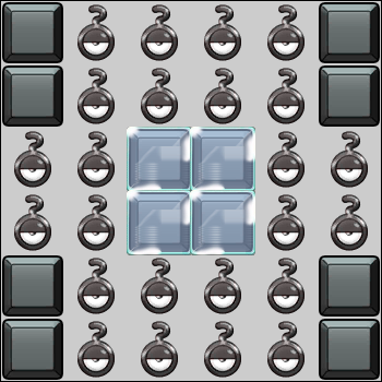 Interferencia 1 Al comenzar la fase, elige una acción: -Rellena el bloque 3x3 que comienza en 2:1 con [Irrompible,Piedra,Irrompible,Piedra,Irrompible,Piedra,Irrompible,Piedra,Irrompible] -Rellena el bloque 3x3 que comienza en 3:1 con [Irrompible,Piedra,Irrompible,Piedra,Irrompible,Piedra,Irrompible,Piedra,Irrompible] -Rellena el bloque 3x3 que comienza en 1:4 con [Irrompible,Piedra,Irrompible,Piedra,Irrompible,Piedra,Irrompible,Piedra,Irrompible] -Rellena el bloque 3x3 que comienza en 4:4 con [Irrompible,Piedra,Irrompible,Piedra,Irrompible,Piedra,Irrompible,Piedra,Irrompible] Repite cada 2 turnos.